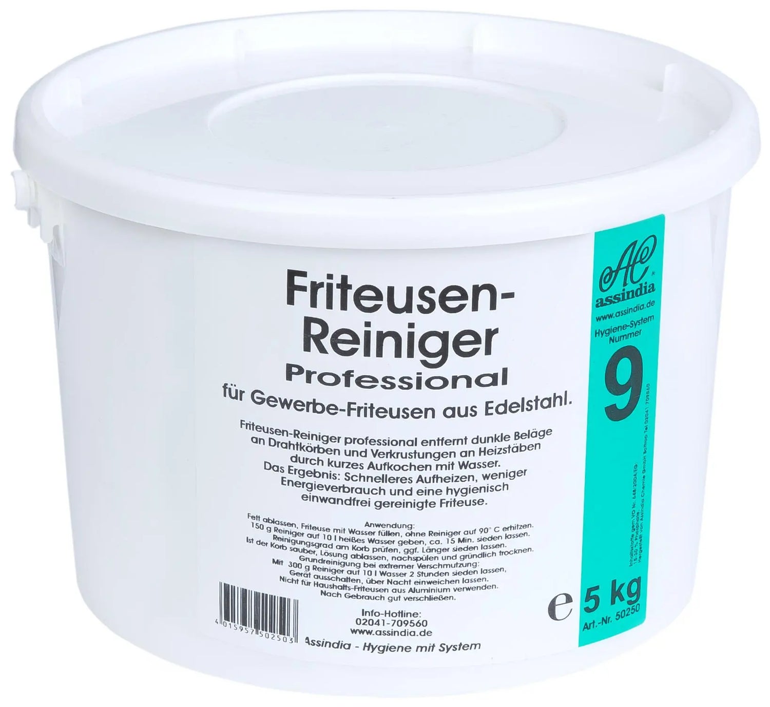 Der Fritteusen - Reiniger ist ein selbsttätig- reinigendes Kompakt-Granulat für Gewerbe-Fritteusen aus Edelstahl. Der Reiniger entfernt stärkste Verkrustung und Frittier-Rückstände an den Drahtkörben, Heizstäben und Becken.