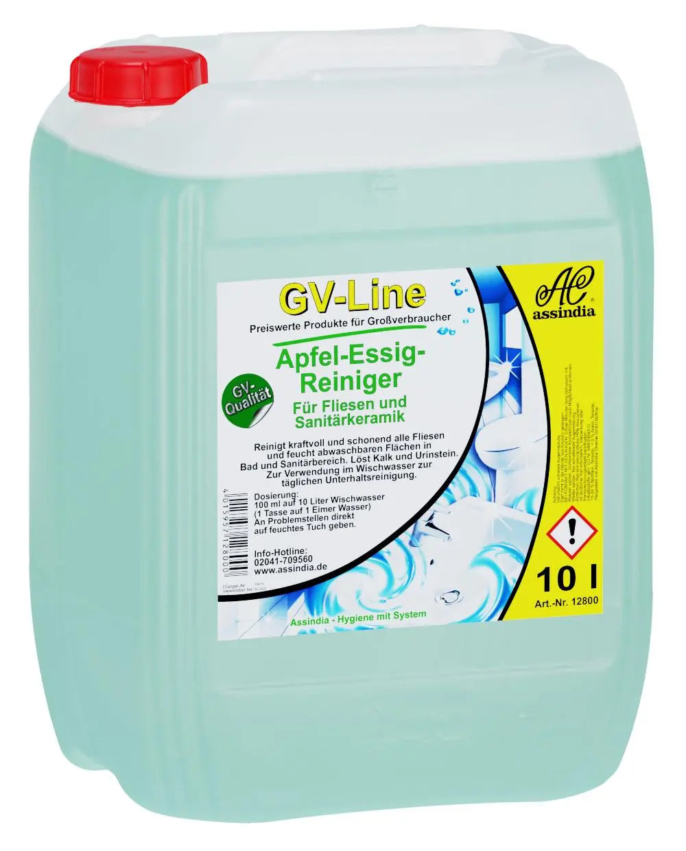 Apple cider vinegar cleaner in bulk consumer quality for all wet-washable surfaces. Reliably dissolves limescale and urine scale. For use in cleaning water for daily maintenance cleaning.