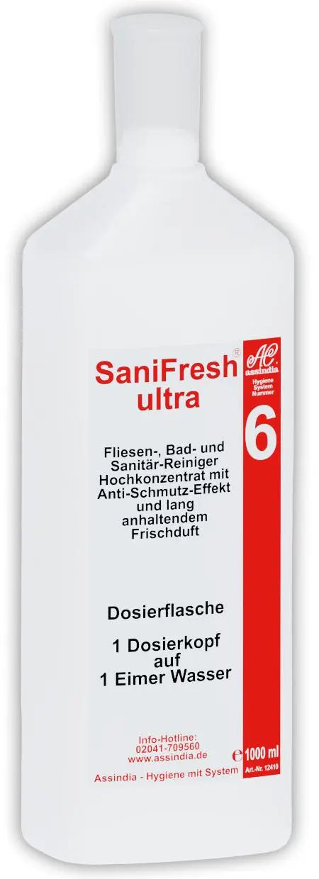 The SaniFresh Ultra tile and sani cleaner is a concentrate with a long-lasting fresh scent. The cleaner is the ideal maintenance cleaner for all sanitary facilities and for tiled floors, whether in the commercial kitchen or at home.