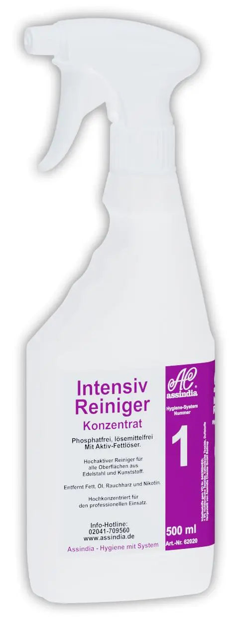 The intensive cleaner is a highly concentrated cleaner for professional use with a wide range of applications. It cleans with a self-active grease remover and automatically removes grease, oil, wax, nicotine, tar and smoke resin and is extremely easy to use.