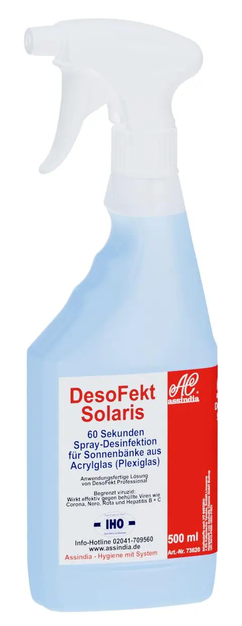 DesoFekt Solaris est sans alcool et particulièrement recommandé pour le verre acrylique (plexiglas).