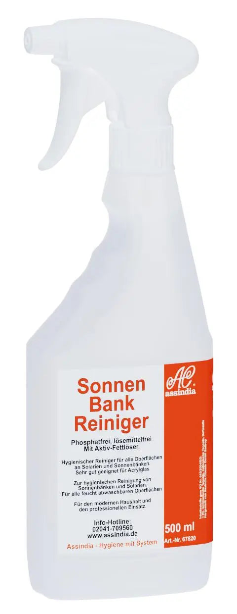 Le nettoyant pour transats est un nettoyant hygiénique pour toutes les surfaces des solariums ou des transats. Très approprié pour le verre acrylique.