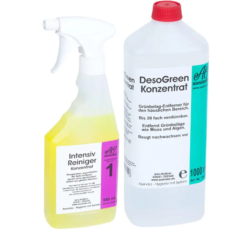 Ergänzend enthält das Paket unseren beliebten DesoGreen Grünbelagentferner, mit dem Sie mühelos Moos, Algen und Grünbeläge von Terrassen, Steinen oder Holzflächen entfernen können.
